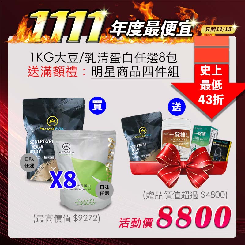 1kg乳清/大豆X任選8袋,口味自由配 提供優質蛋白質,為運動表現與身型補足能量