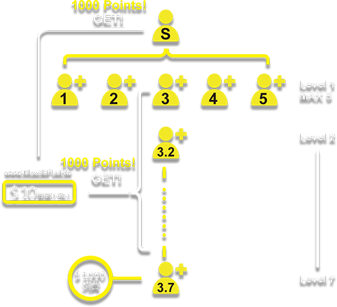 • 每個人最多只能擁有5個在第一層的“被推薦人”;如果您推薦第六位朋友的話系統會自動把那位朋友選一位您其他的朋友為“推薦人”,這樣這位朋友購買時您的朋友和您都會同時收到1%的回饋