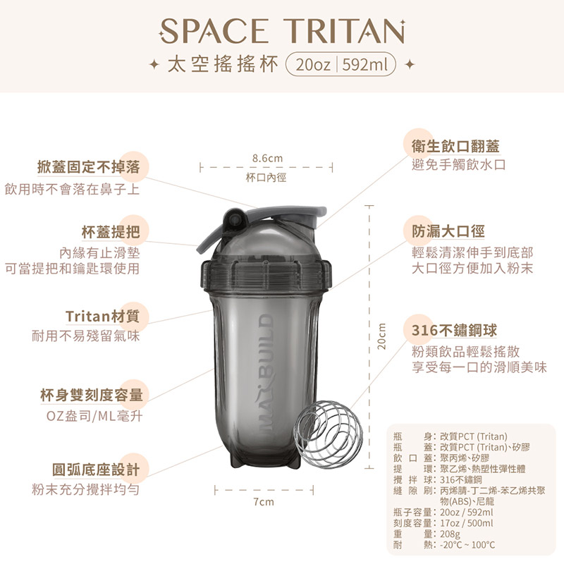 : Muscle Fuel 每份35克的粉只需要130-200cc的水,如果搖搖杯只是用來泡 Muscle Fuel 的話,這款20 oz剛好
